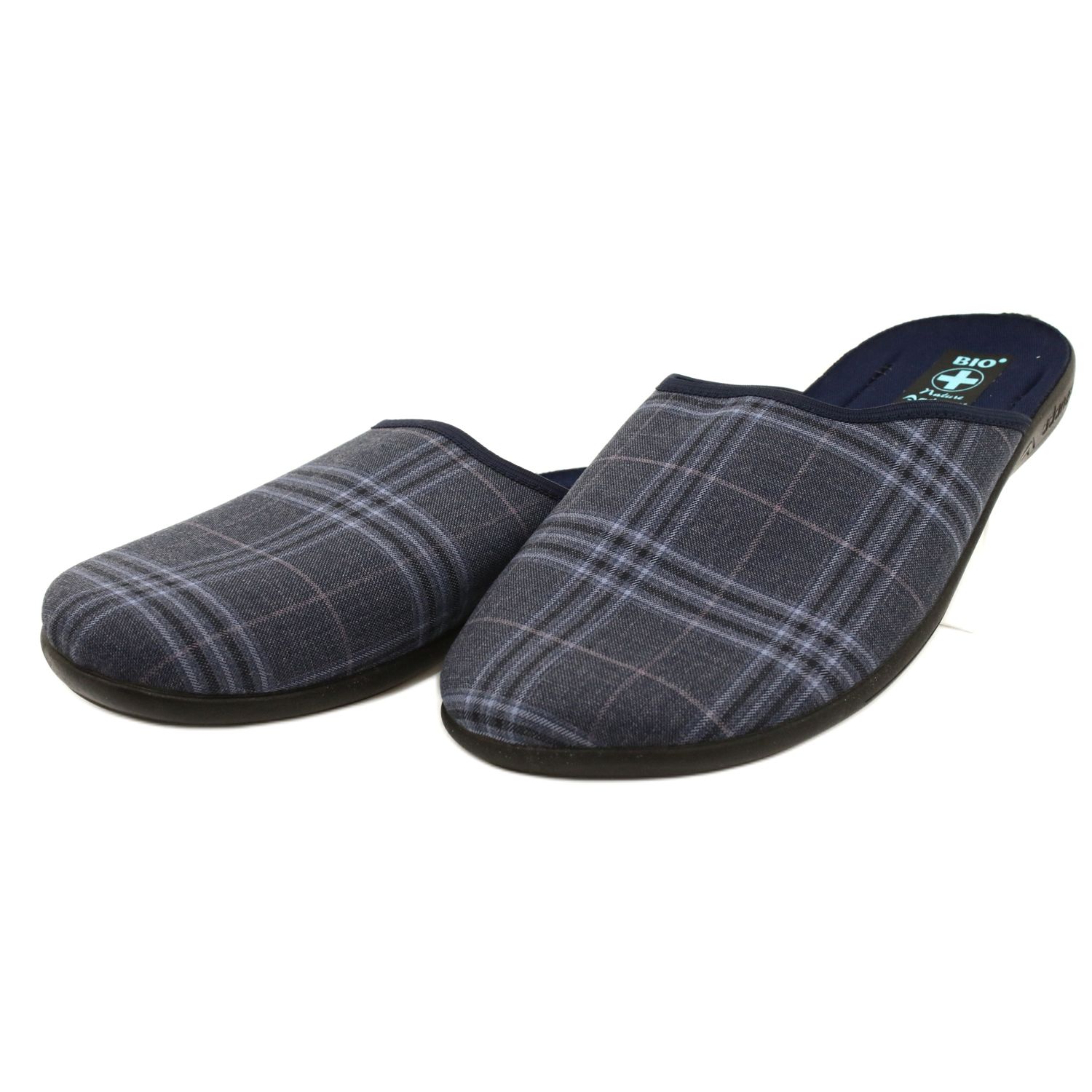Pantofle jsou dostupné v atraktivních tmavě modrých a modrých barvách, s módním kostkovaným vzorem, díky čemuž jsou perfektním doplňkem každého domácího stylingu. Černá podrážka a nazouvací povaha žabek usnadňuje jejich nazouvání a zouvání.