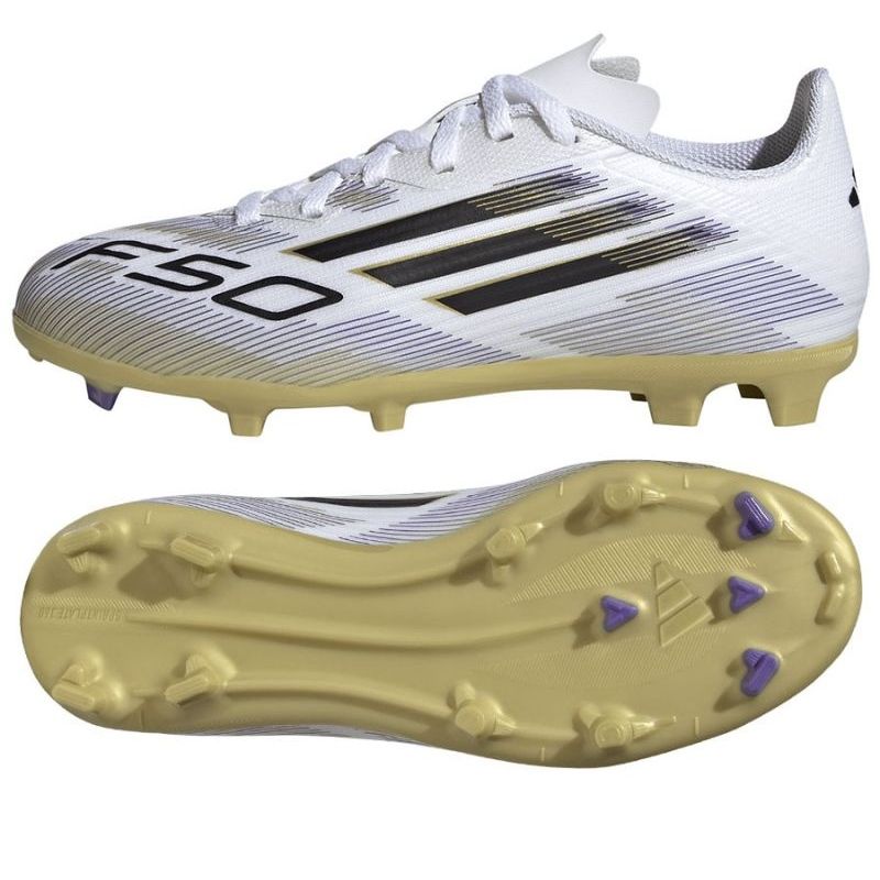 Objevte radost z hraní fotbalu díky fotbalové botě Adidas F50 League FG/Mg JHH7745 v klasické bílé barvě. Tyto juniorské dopravní zácpy, ideální pro přírodní i umělou trávu, kombinují moderní design s funkčností, což z nich činí nepostradatelný prvek vybavení každého mladého sportovce.