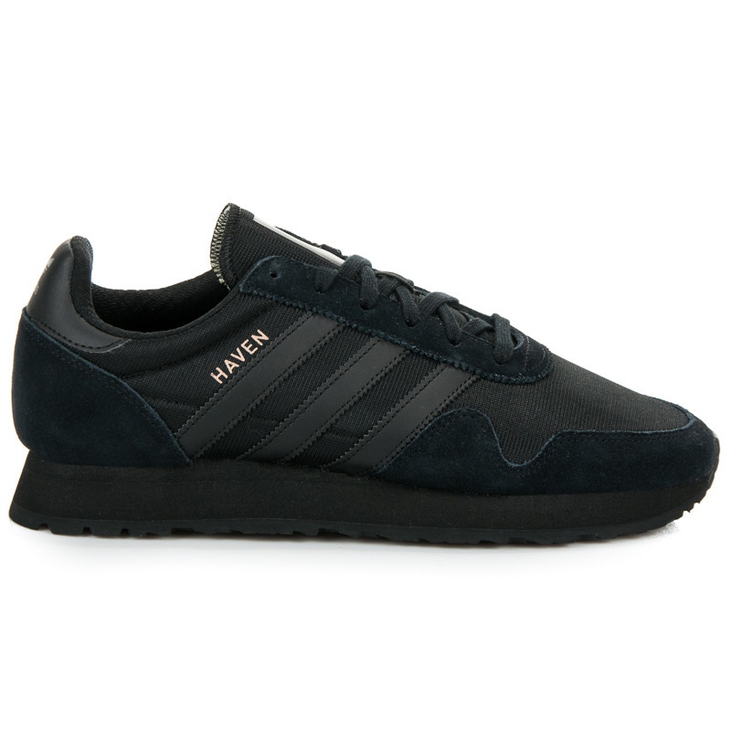 Adidas Haven - klasické černé tenisky pro muže, kombinující sportovní pohodlí s každodenní elegancí. Vyrobeny z přírodní kůže, s nízkou konstrukcí a zapínáním na šněrování se skvěle hodí jak do městského stylu, tak jako pohodlné každodenní boty.