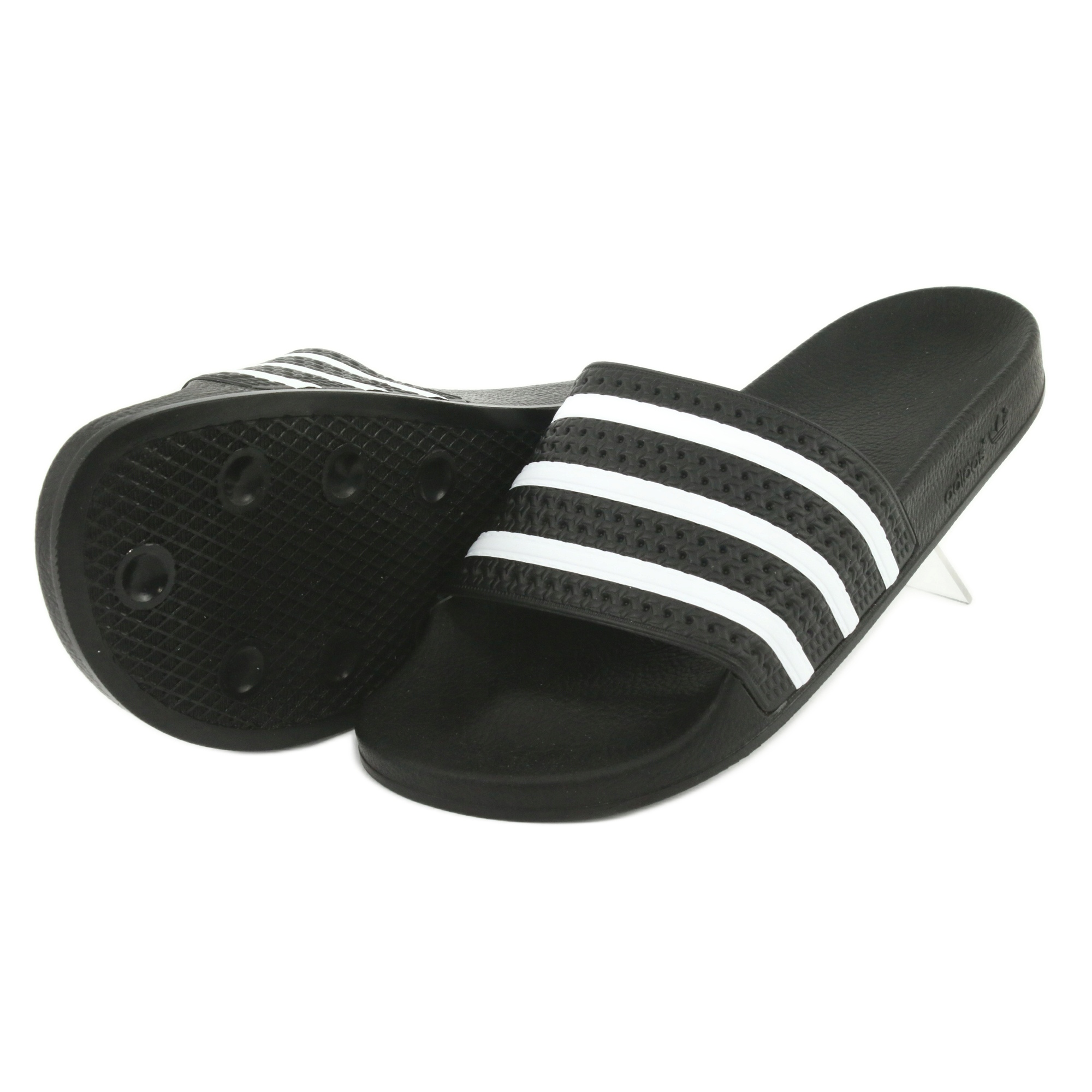 Díky přilnavé podrážce jsou žabky stabilní na mokrém i suchém povrchu. Klasická černá barva s bílými pruhy jim dodává sportovní charakter a hodí se k mnoha letním stylům.