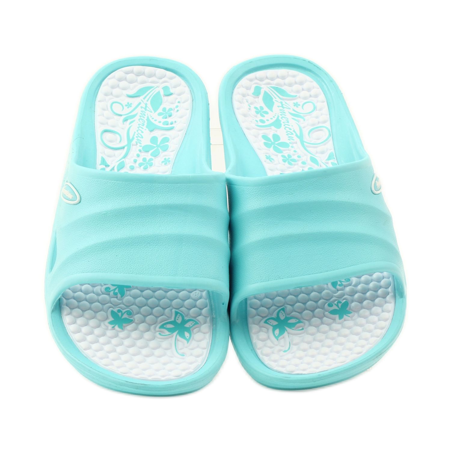 Pěnové vodní žabky American Club v mátové a modré barvě jsou perfektní volbou na letní výlety k vodě. Díky své lehké konstrukci poskytují tyto dámské žabky maximální pohodlí, ideální pro použití na pláži, v bazénu nebo při relaxaci na dvoře.