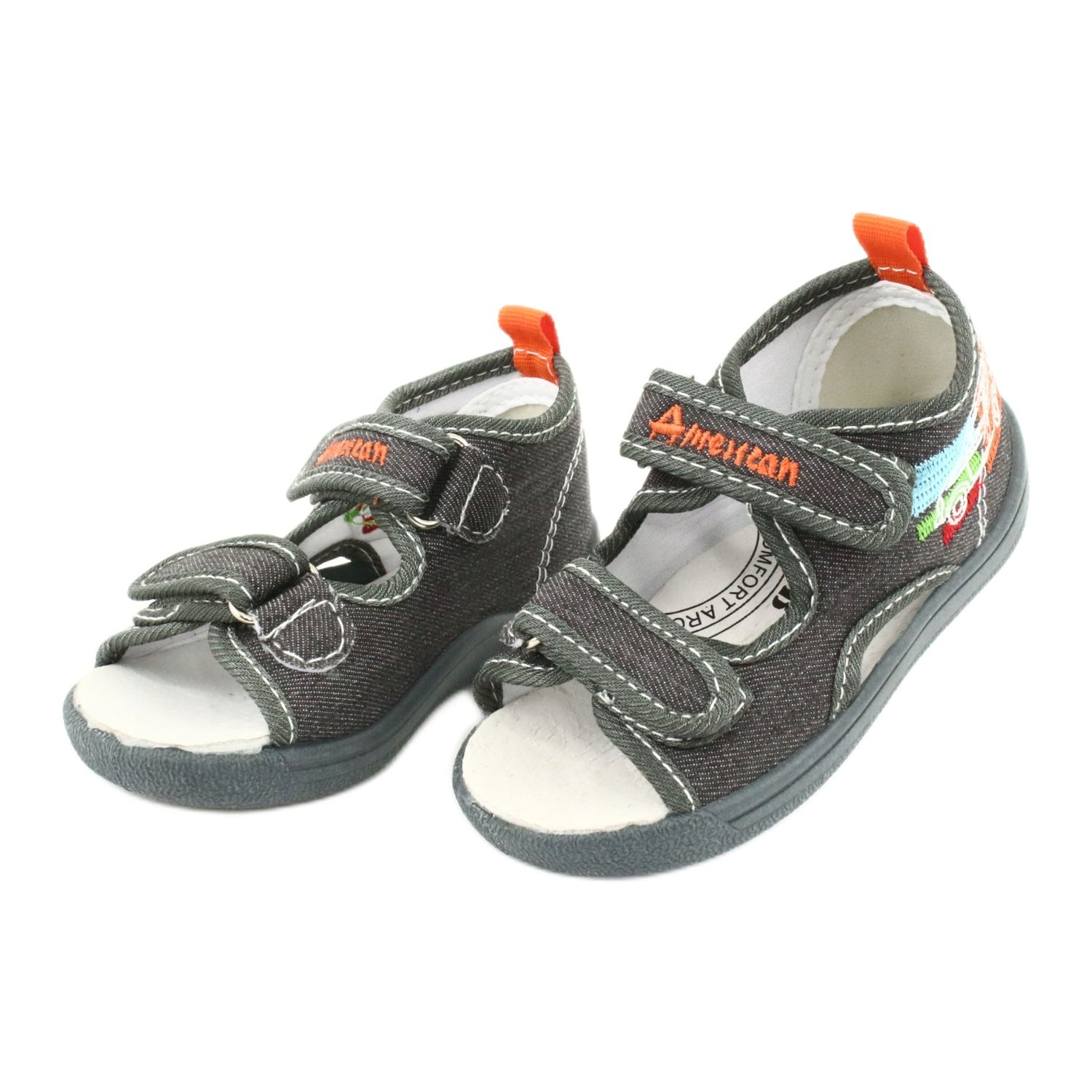 American Club TE46-Comfortable a stylové dětské sandály v šedooranžových barvách, které budou skvělé v mateřské škole, domově a na hřišti. Horní vyrobená z vysoce kvalitních džíny typu textilního materiálu vypadá módní a je příjemná na dotek a interiér lemovaný textilním materiálem se stará o pohodlí batole. Vložená kožená vložka zajišťuje přirozenou vlhkost a pohodlí během nošení, zatímco elastická podrážka vyrobená z pěni z lehké gumy absorbuje kroky a usnadňuje volný pohyb. Stužní upevňovací prvek stabilizuje nohu a praktické upevnění suchého zipu umožňuje rychlou a nezávislou instalaci a montáž obuvi.