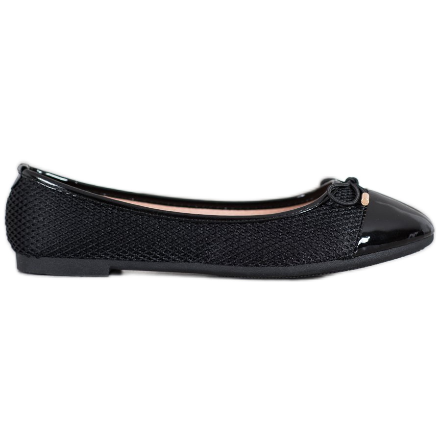 Tento model využívá vestavěnou měkkou patu, která obepíná nohu a zajišťuje maximální pohodlí. Díky chybějícímu podpatku a hladké plastové podrážce jsou tyto balerínky ideální na nošení při dlouhých procházkách nebo trávení času v práci. Klasická kulatá špička a jemná mašlička dodávají botám jedinečné kouzlo a díky jejich univerzální černé barvě se hodí k mnoha různým stylům.