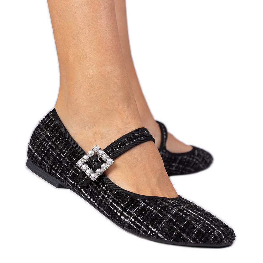 Plochý paty s výškou 1 cm způsobuje, že balerína je velmi pohodlná, ideální po dlouhé dny na běhu. Čtvercový nos a jemné dekorace ve formě zirkonů jim dávají eleganci, takže je způsobují, že se hodí jak každodenní stylizace, tak formálnější oblečení. Černé barvy a odpovídající černá podešev dělají z těchto balerínas všestranným kusem oblečení, harmonicky míchání s klasickými sukněmi a také příležitostnými džíny.