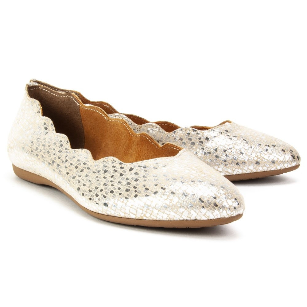 Model H31-319 se vyznačuje jemnou, mandlovou špičkou, platforma vysoká 0,5 cm a hmotnost 0,6 kg činí balerínky extrémně pohodlné na nošení. Zlatá, metalická barva jim dodává lesk, díky čemuž jsou skvělým doplňkem jakéhokoli stylingu – ležérního i elegantnějšího.