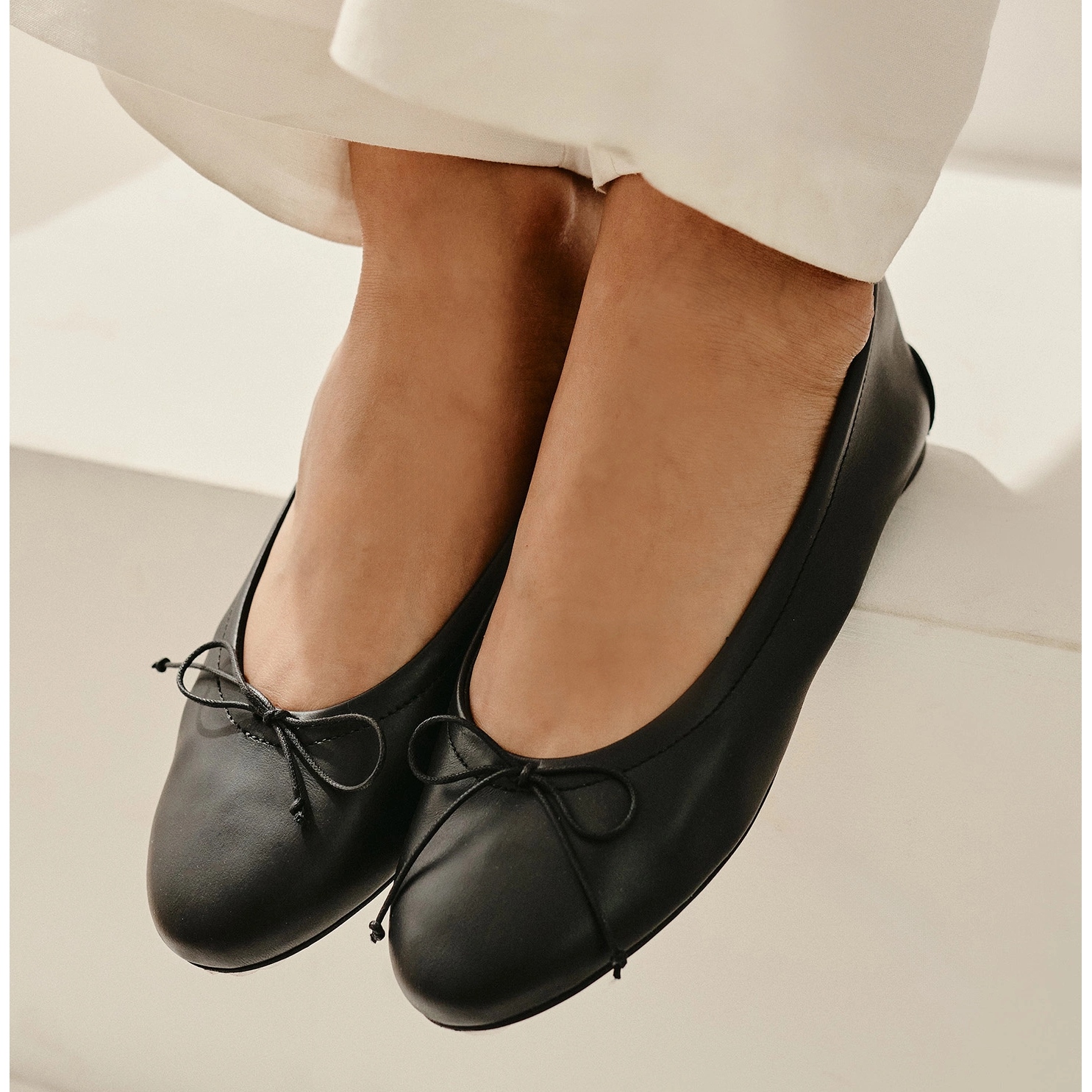 Marco Shoes - Passo Ballet in Classic Black, kombinující eleganci s každodenním pohodlím. Vyrobeno z přirozené zrna kůže, ve verzi s nehranitou, se dokonale přizpůsobují tvaru nohy a jemný luk z tkaniček umožňuje individuální přizpůsobení. Dva -částici, flexibilní podešev umožňuje volné ohýbání boty, což se během každého kroku promítá do výjimečného pohodlí.