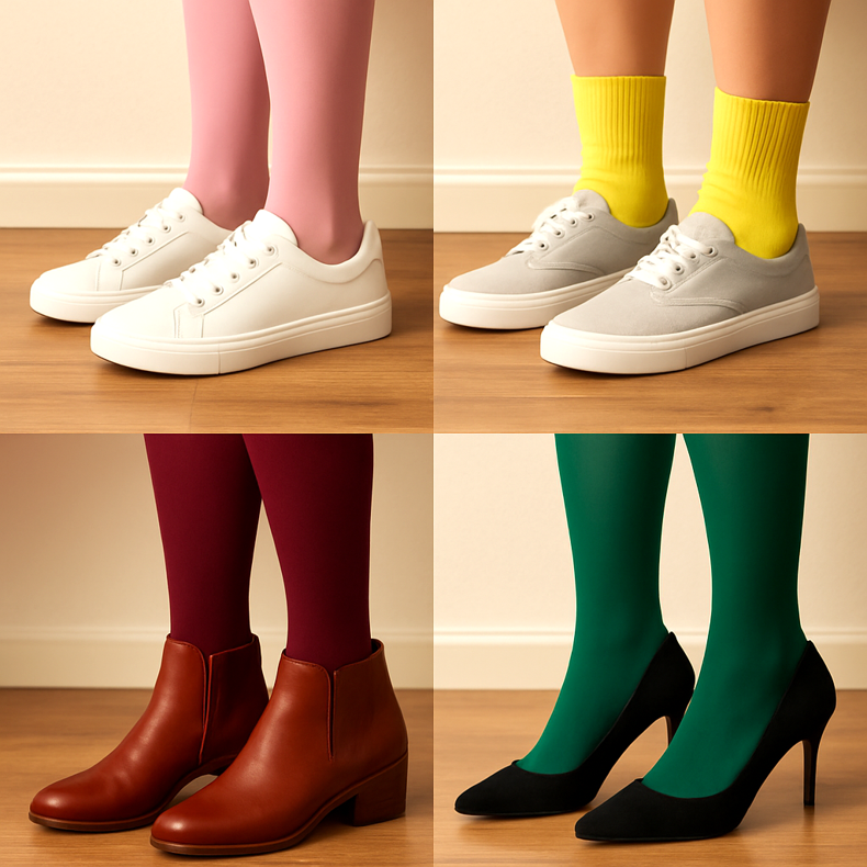 Barevné punčocháče a ponožky - průvodce stylovým připojením s obuvi
