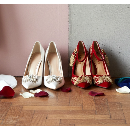 Bílé svatební střevíčky již nejsou povinností. Stále více nevěst volí barevné vysoké podpatky – od pastelových až po červené. Podívejte se, jak vybrat barevné boty k šatům a proč je to praktická volba.