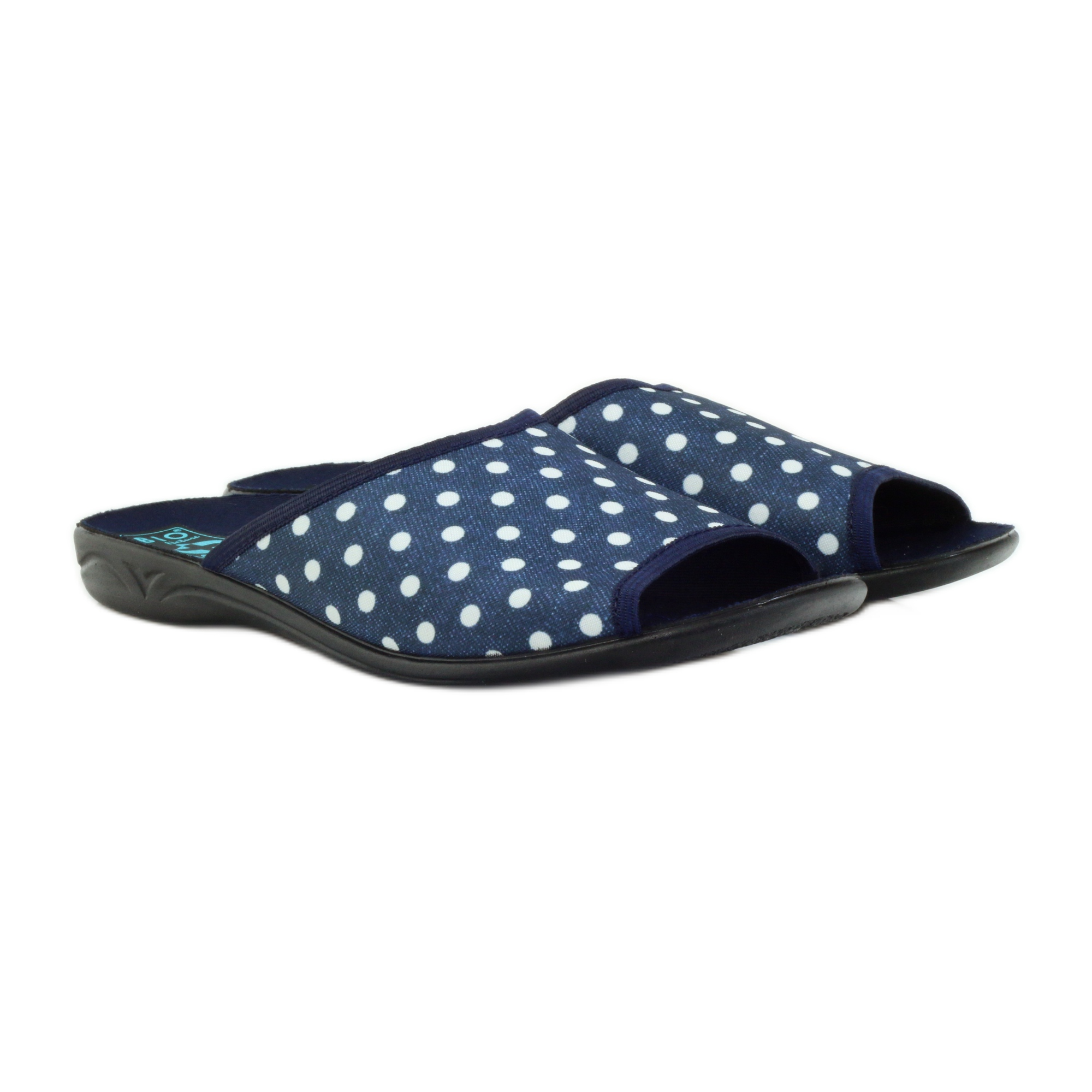 Bavlněné tečkované pantofle Adanex v tmavě modré barvě s bílými puntíky jsou perfektní volbou pro každou ženu, která si cení pohodlí a stylu domácí obuvi. Vyrábí je polská společnost Adanex a vyznačují se vysokou kvalitou materiálů a pečlivým zpracováním.