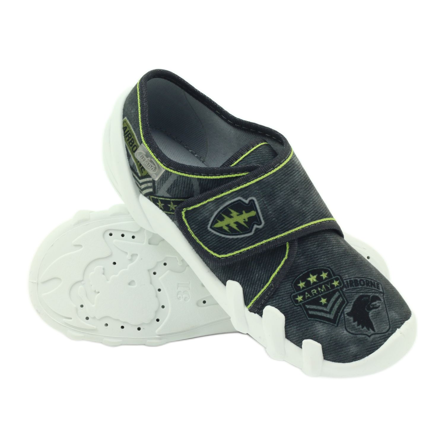 Objevte dokonalé pantofle pro vaše dítě - Befado model 273Y241 ARMY AIRBORNE. Tyto extrémně funkční tenisky v černé, šedé a zelené barvě jsou dokonalou kombinací pohodlí a módního designu. Díky systému Soft-B poskytují zvýšený komfort chůze a účinně chrání nohy na nerovném terénu, tlumí mikronárazy a snižují tlak pociťovaný chodidly.