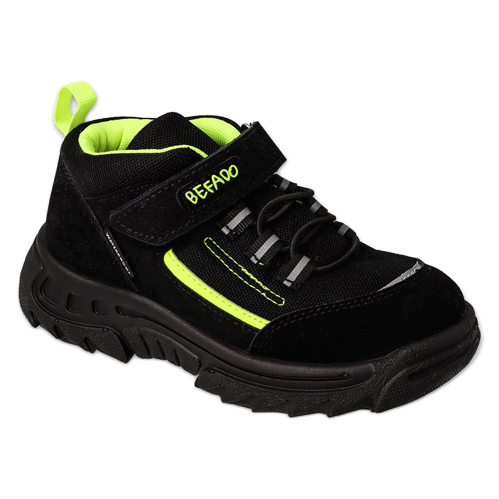 Objevte perfektní obuv pro aktivní děti - černé boty Befado Trekking se zelenými akcenty (model 515Y004). Tyto sportovní boty, které jsou navrženy pro malé průzkumníky, kteří rádi tráví čas venku, kombinují funkčnost a styl.