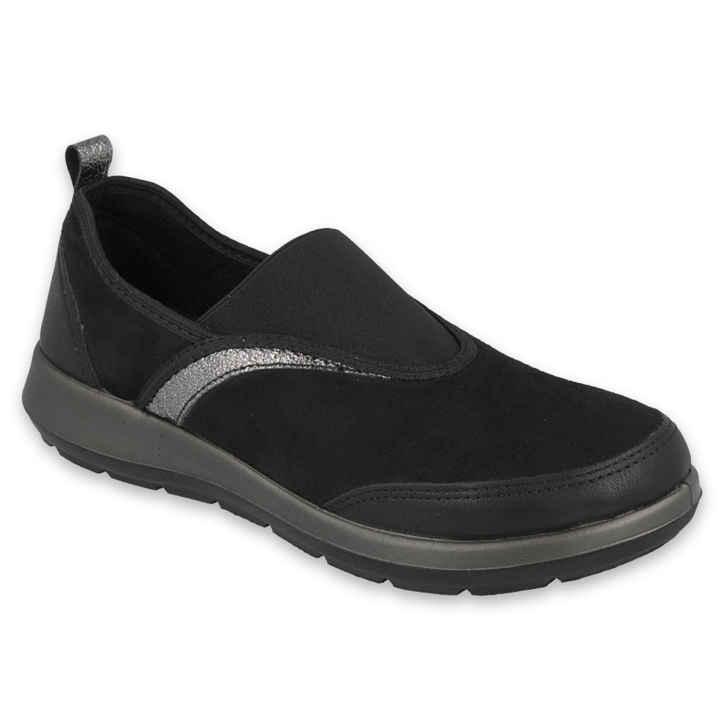 Klasická, pohodlná a snadno se oblékne - jedná se o ženskou ženskou dámskou botu Befado 156D006. Jednoduchý, minimalistický řez v univerzální černé barvě s šedými akcenty způsobuje, že pracují jak jako domácí pantofle, tak jako pohodlná obuv pro rychlé výstupy. Nedostatek zipů a tkaniček umožňuje okamžité vložení nohy a kulatý nos zajišťuje přirozené uspořádání prstů.