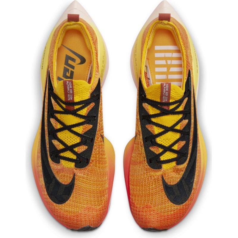 Běžecké boty Nike Air Zoom Alphafly Next% Flyknit M (DO2407-728) v černé, oranžové a žluté barvě jsou perfektní volbou pro každého běžce, který usiluje o dosažení nových rekordů. Díky pokročilé technologii nabízí tyto lehké a vzdušné boty nebývalý výkon, zaručující nejvyšší energetickou návratnost ze všech závodních modelů.
