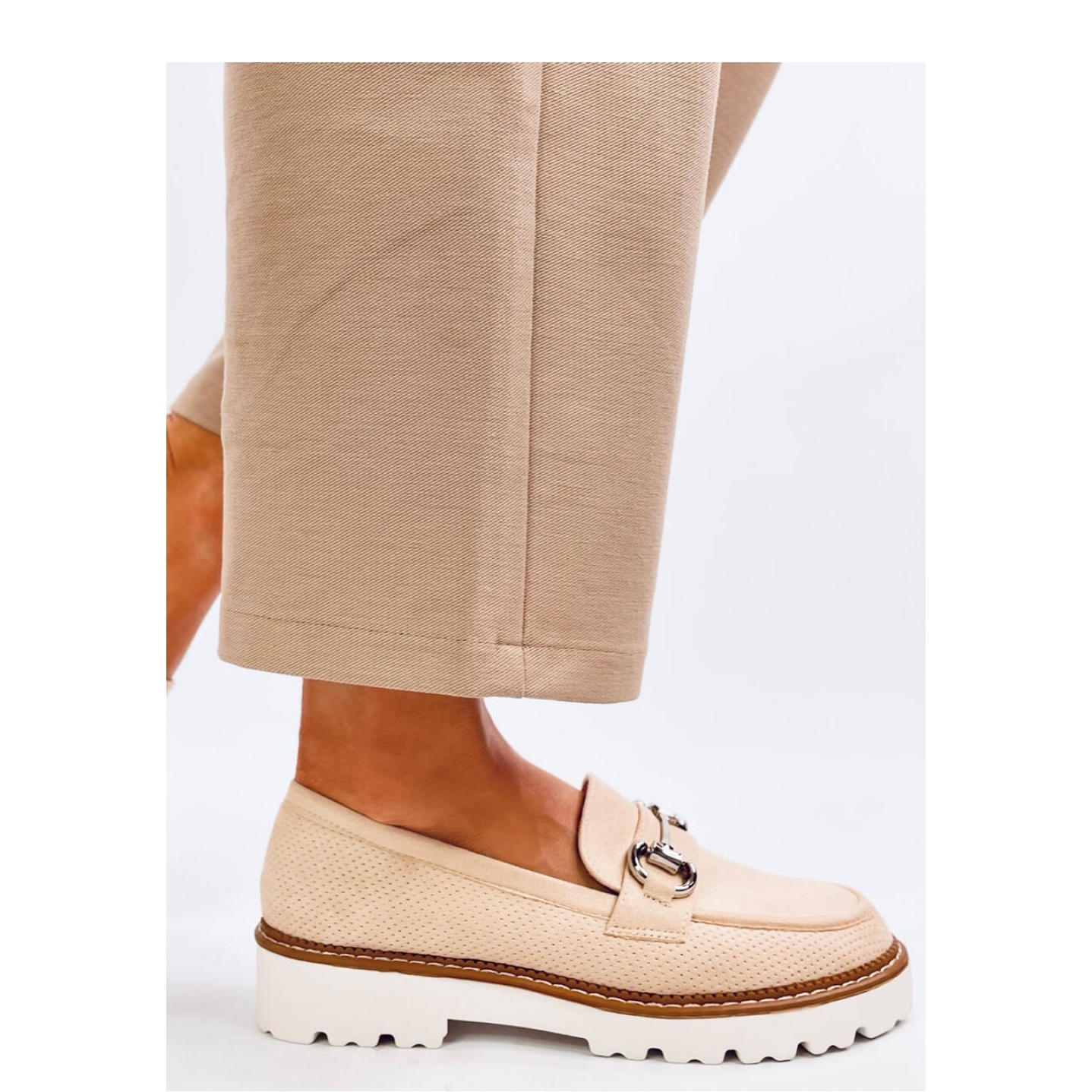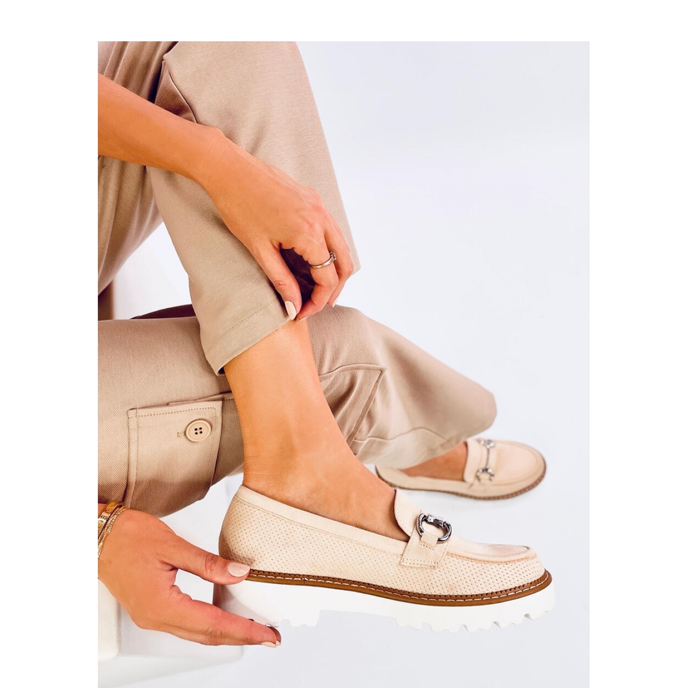 Moccasiny mají plochou podrážku s výškou 2 cm a 3,5 cm patu, což zajišťuje stabilitu a pohodlí při nošení. Kulatý nos jim dává jemnosti a béžová barva je způsobuje, že se dobře mísí s mnoha styly. Díky ekologické pokožce poskytuje vložka pohodlí celý den.