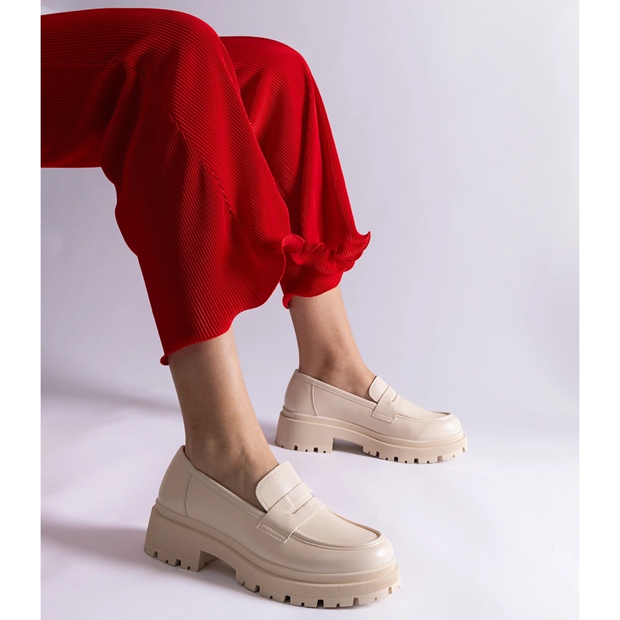 Jejich nízká výška a měkký kulatý nos činí tyto mokasíny ideální pro každodenní stylizace, a to jak pro práci, tak pro schůzky s přáteli. Výška paty 4 cm přidává trochu elegance a zároveň poskytuje pohodlí i během dlouhých hodin nošení. Béžová barva se dokonale harmonizuje s různými oděvy a dává svobodu při vytváření módních kombinací.