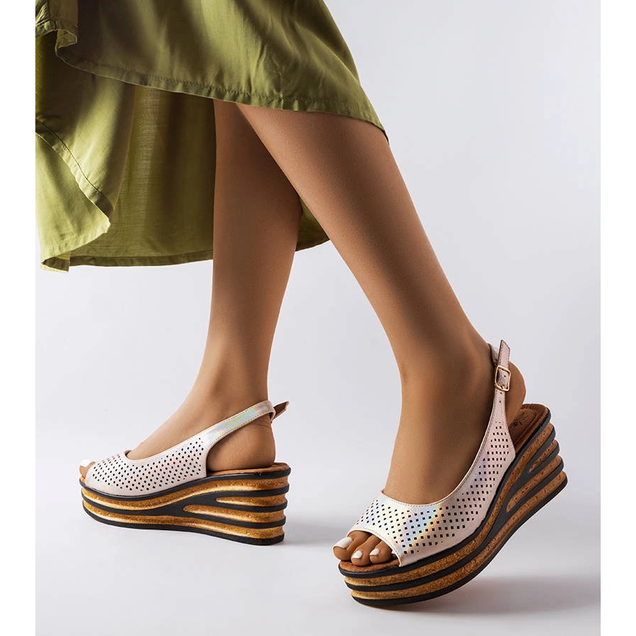 Beige espadrilles na griner klínu - stylové a pohodlné sandály, které budou perfektním doplňkem letních stylizací. Model lesklé sandály na klínu GD-FL1041A kombinuje klasickou formu s jemnou dekorací s otevřenou prací, která zvyšuje lehkost a čerstvost.