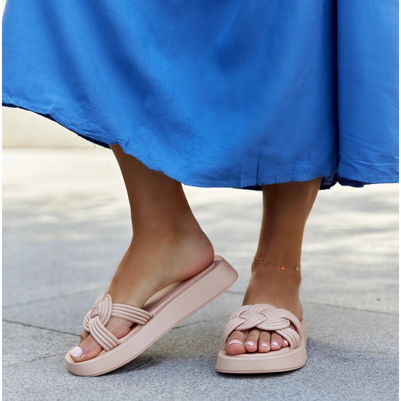 Plubky se vyznačují neutrální béžovou barvou, která se snadno shoduje s různými letními stylizacemi. Díky patě 3 cm nabízejí jemné pohodlí při chůzi a jejich hladká gumová podešev poskytuje dobrou adhezi, což z nich dělá praktickou volbu pro každý krok.