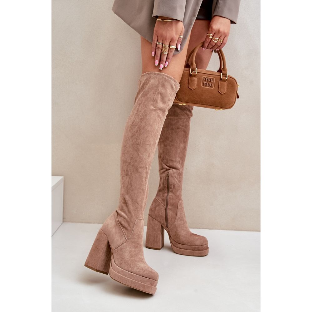 Inna marka Béžové kozačky Nadelian nad kolena s vysokým podpatkem a platformou béžový