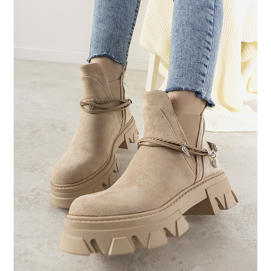 Inna marka Béžové kozačky s náramkem Fearless béžový