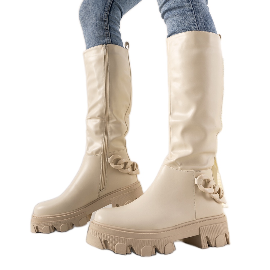 Inna marka Béžové kozačky s řetízkem Conny béžový
