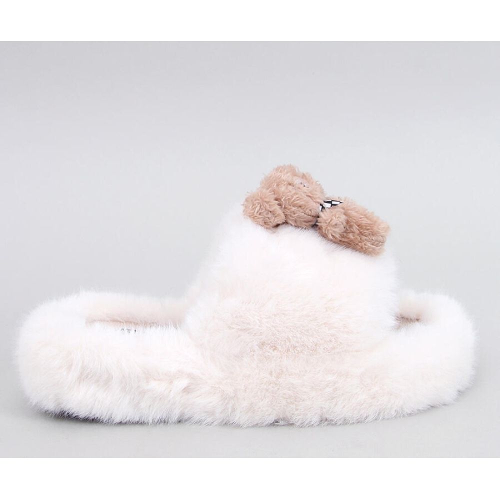 Inna marka Béžové kožešinové pantofle s medvídkem béžový