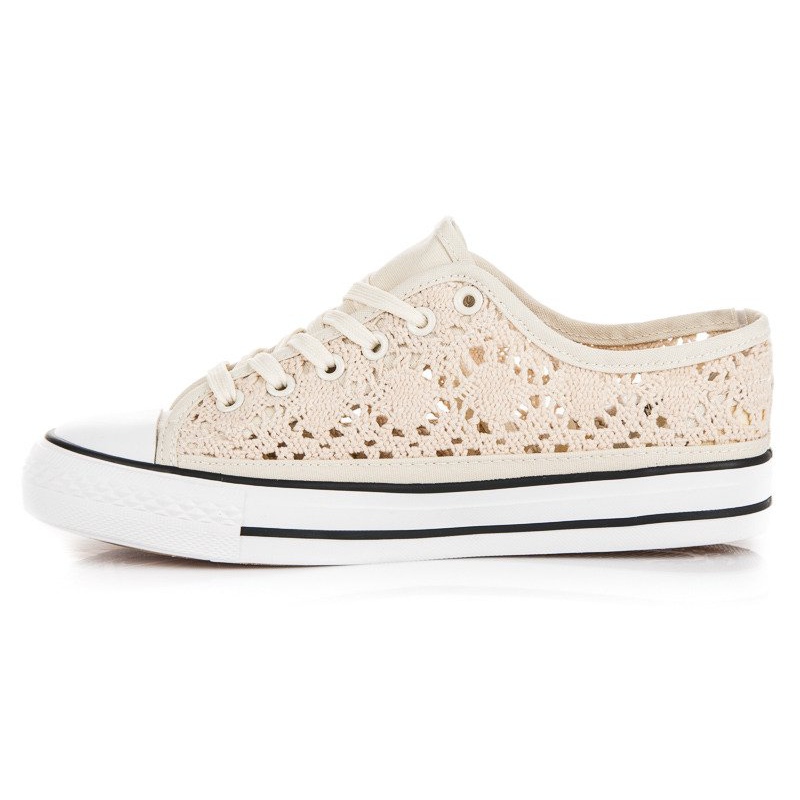 Díky jednoduchému designu nemají tyto tenisky další ozdoby, což jim umožňuje zachovat minimalistický a elegantní vzhled. Je to perfektní volba pro ženy, které chtějí přidat trochu třídy do svého každodenního šatníku, aniž by obětovaly pohodlí. Vyberte si béžové krajkové tenisky a užijte si styl a pohodlí na každém kroku!