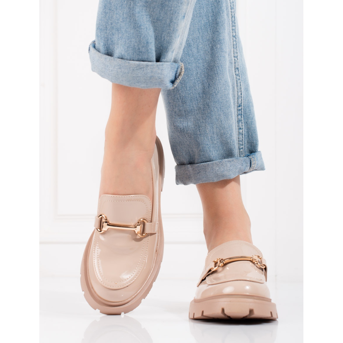 Béžové lakované boty Shelovet jsou dokonalou volbou pro ženy, které oceňují eleganci a každodenní pohodlí. Tyto klasické mokasíny se budou dobře hodit jak v ležérním, tak i formálnějším stylu, díky čemuž se stanou nenahraditelným prvkem každého jarního a letního šatníku.