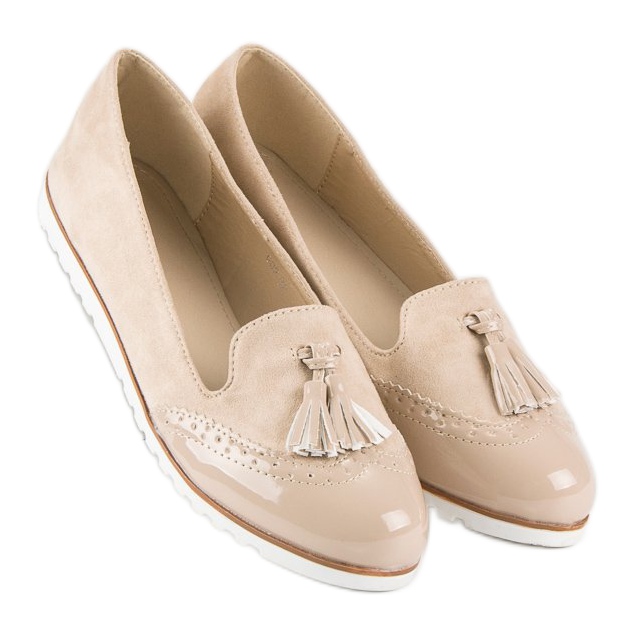 **Béžové mokasíny Super Me s třásněmi**
