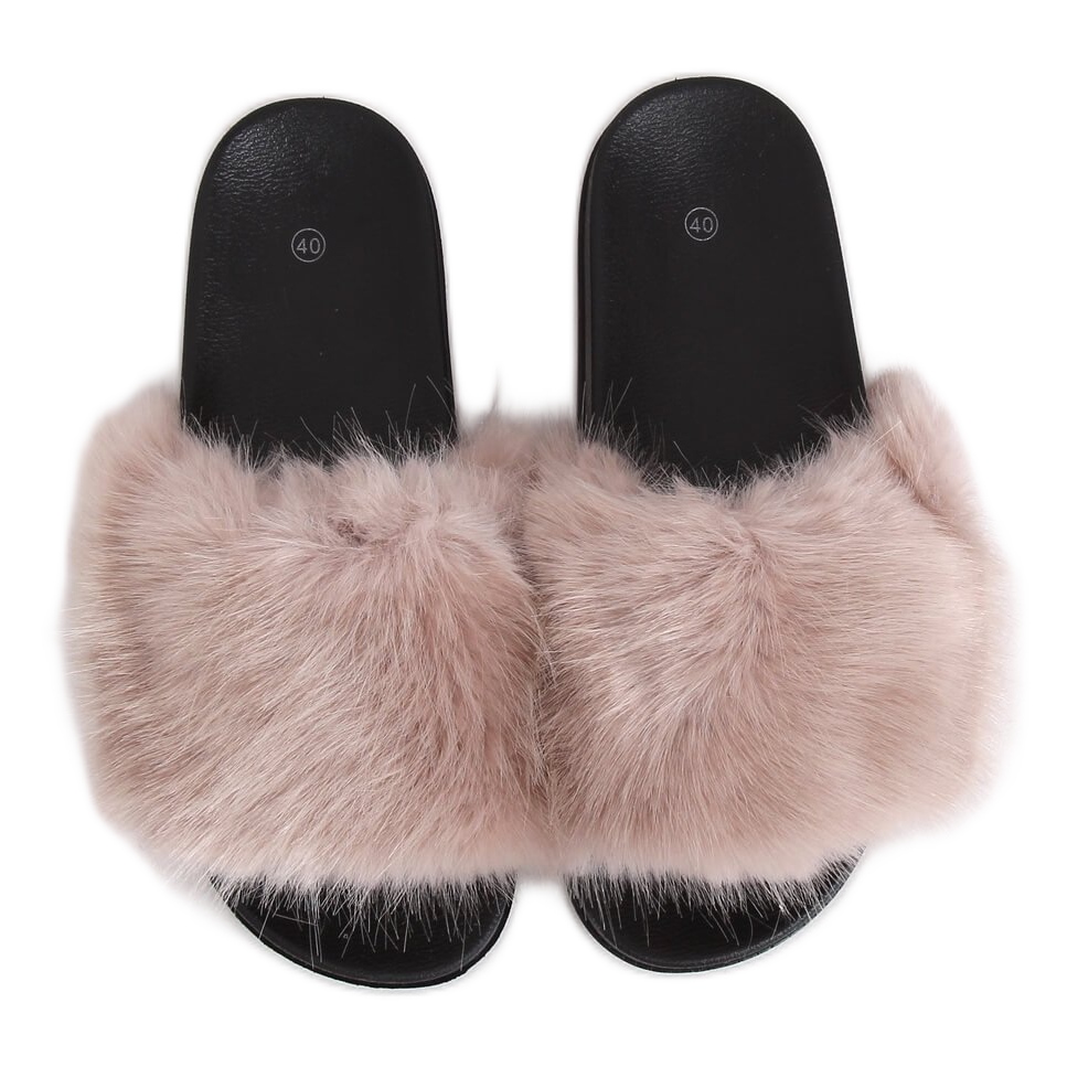 Inna marka Béžové pantofle s kožešinou CK107P Béžová béžový