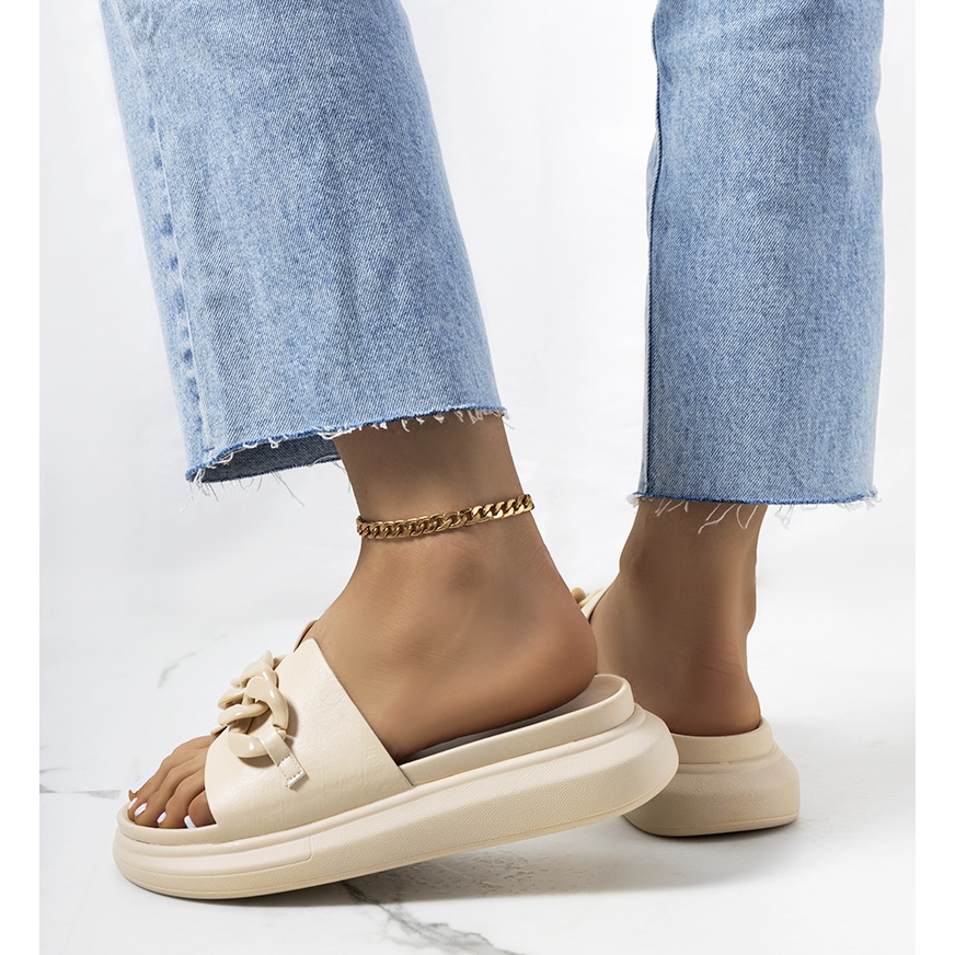 BM BM Béžové pantofle s řetízkem Levy béžový
