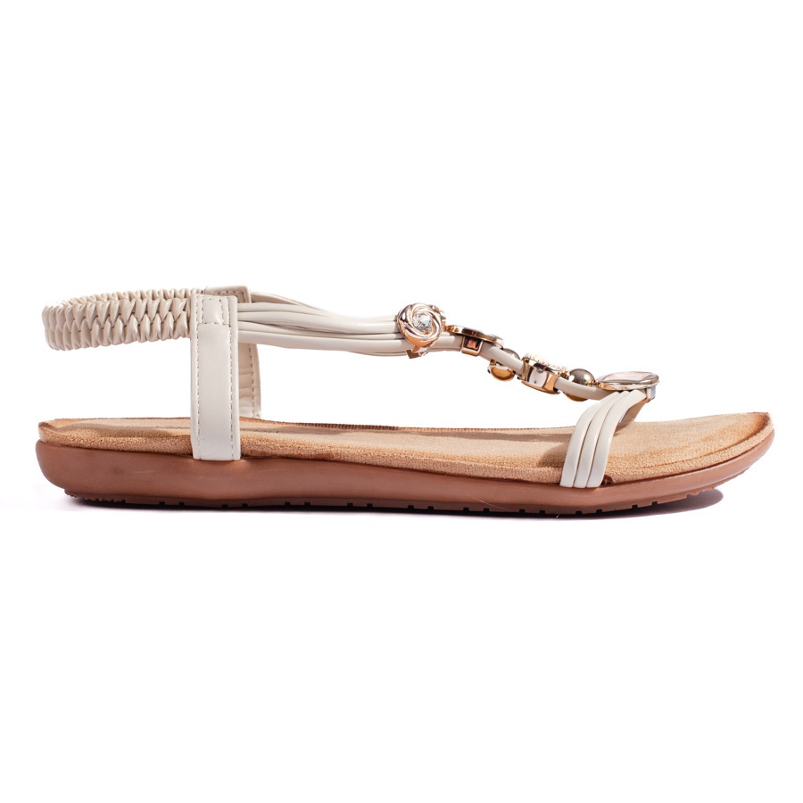 Módní béžová barva kombinovaná s elegantním příslušenstvím ve formě zirkonů a drahokamů činí tyto sandály perfektním doplňkem klasických i módních stylizací. Jejich vložený řez způsobuje, že se nasazení a vzletování je rychlé a potíže s bezprostředně a plochá pata s výškou 3 cm zaručuje pohodlí i během dlouhodobého opotřebení.