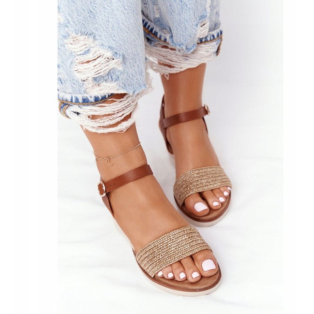 Podrobnosti: EVE Béžové sandály na klínové podpatku s copánky na Tenerife hnědý