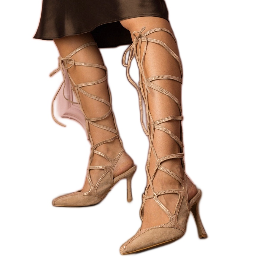 Inna marka Béžové sandály na vysoké patě svázané zirkony béžový