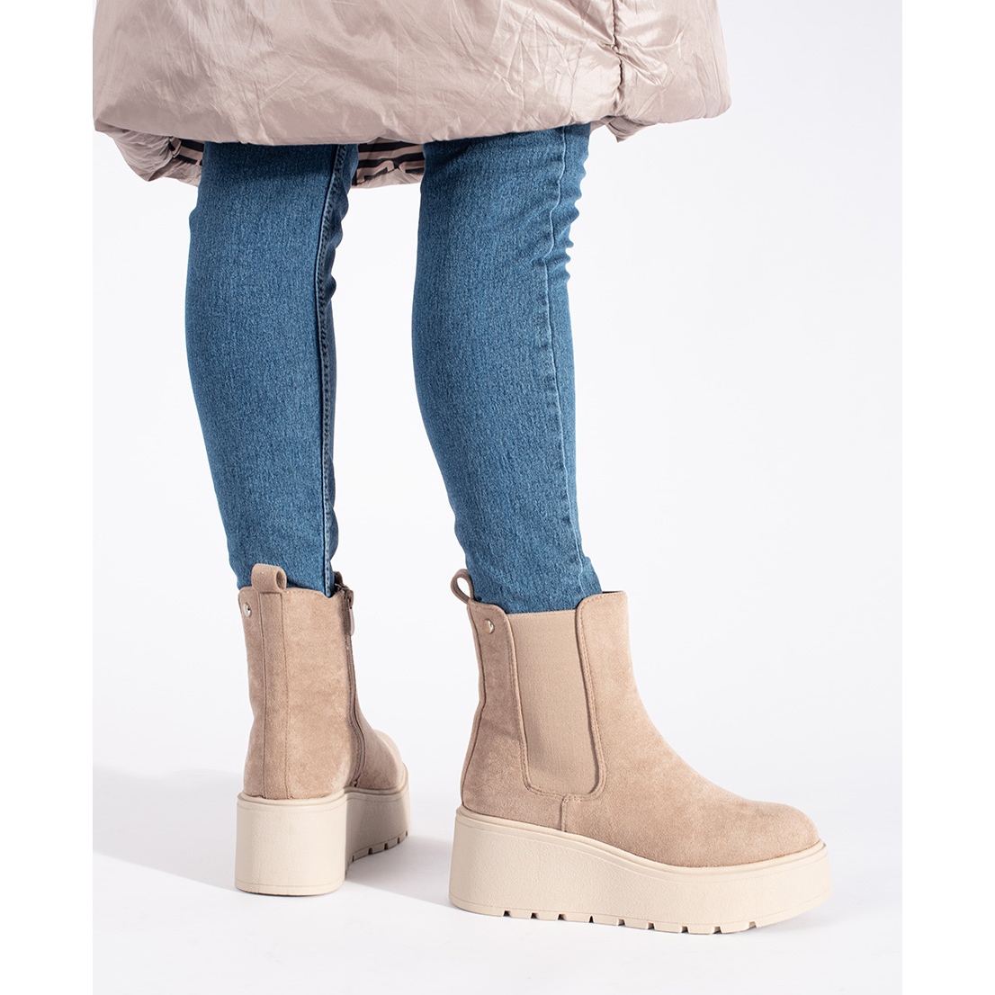 - Modelka: Béžové semišové boty Chelsea s klínky