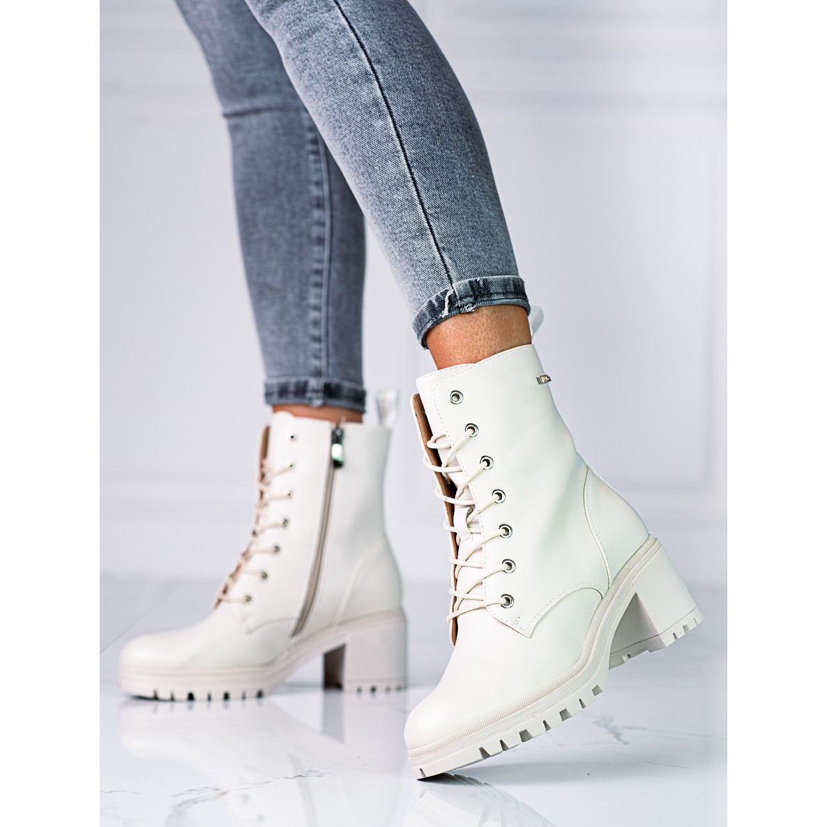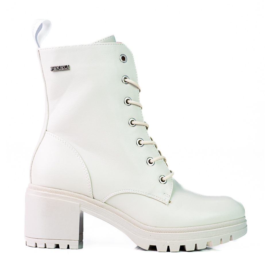 Jedná se o béžové dámské šněrovací pracovní boty značky Vinceza, které budou perfektní volbou na sezónu podzim/zima. Tyto stylové kotníkové boty kombinují ležérní a rockový styl, ideální pro každodenní výlety. Jsou vyrobeny z ekologické kůže se strukturovaným povrchem, vypadají mimořádně elegantně a jejich nadčasová béžová barva umožňuje sladění s mnoha styly.