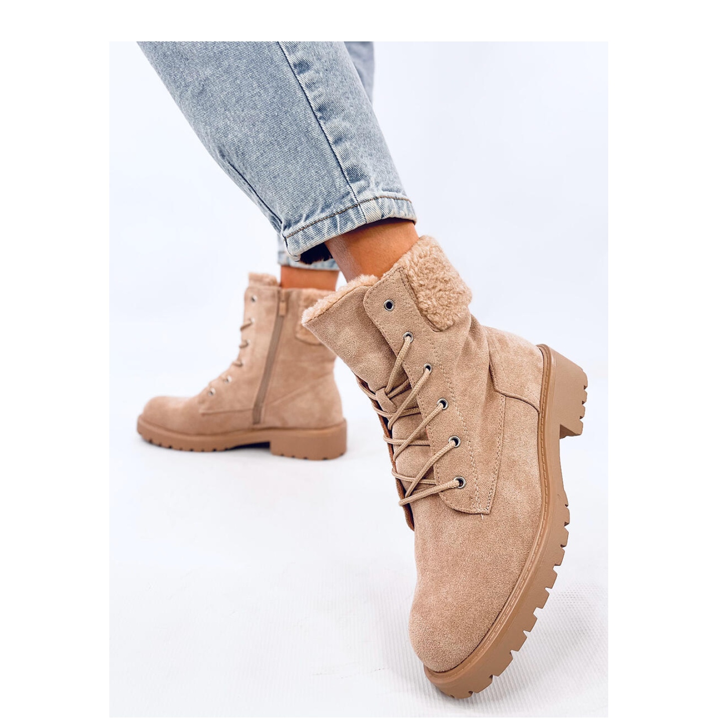 Zde jsou klasické dámské boty krajky -Up v béžové barvě, která se potěší nejen stylem, ale také s pohodlím nošení. Okouzlující detaily, jako je měkké jehněčí obklopující svršek, jim dávají jedinečný charakter, který je odlišuje od jiných modelů.