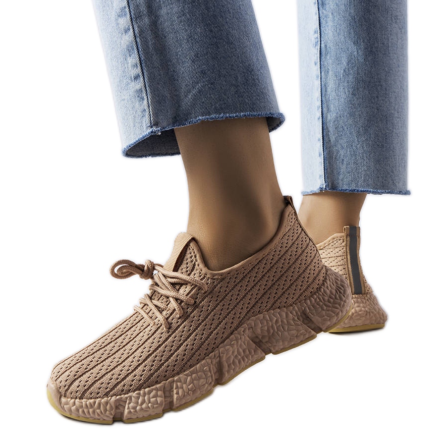 Moderní, lehké tenisky Ostatní élodies v univerzálním odstínu béžové jsou návrhem pro ženy, které si cení pohodlí a stylu. Model ponožky vyrobené z flexibilní tkaniny se přizpůsobí noze a šněrování vám umožňuje navíc upravit shodu. Žlutá gumová podešev přidává původní přízvuk a poskytuje dobrou adhezi.