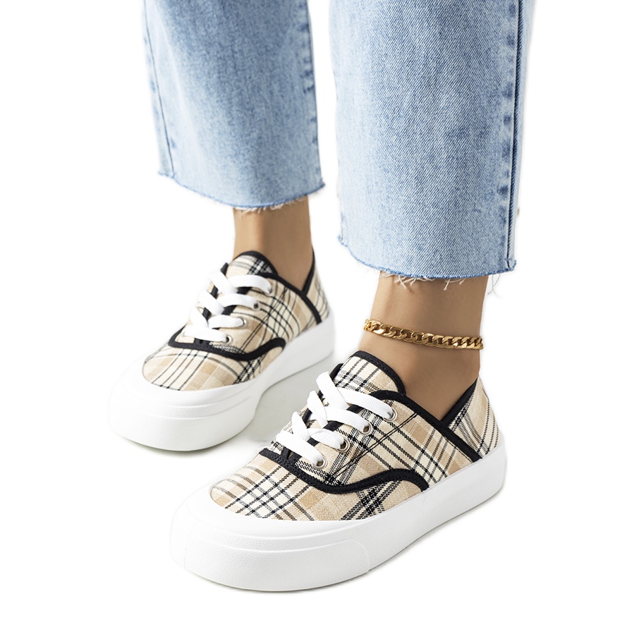 Letní tenisky, které přidají postavu ke jakékoli stylizaci. Módní, vysoká podrážka (platforma 3 cm) jde dobře s původním kostkovaným svrškem a neutrální béžová barva je činí velmi univerzálními. Vyrobeny z vysoce kvalitních tkanin, zajišťují pohodlí po celý den.