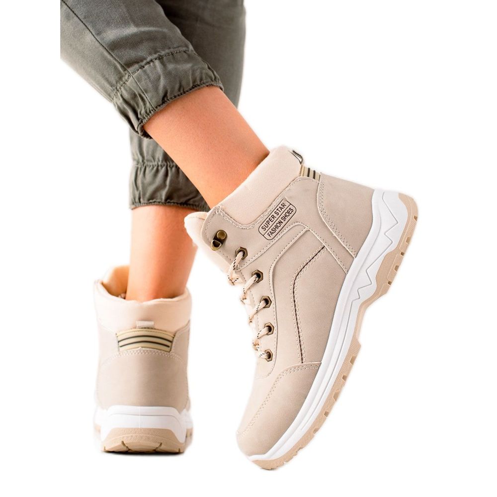 Objevte pohodlí a styl s béžovými zateplenými turistickými botami TRENDI! Tyto elegantní boty jsou perfektní volbou pro chladné podzimní a zimní dny, kombinují módní design a funkčnost. Jsou vyrobeny z vysoce kvalitní imitace kůže, jsou nejen estetické, ale také snadno se udržují. Měkká vestavěná pata poskytuje chodidlu vynikající podporu a díky izolaci jsou vaše nohy v teple a pohodlí i v nejchladnějších dnech.