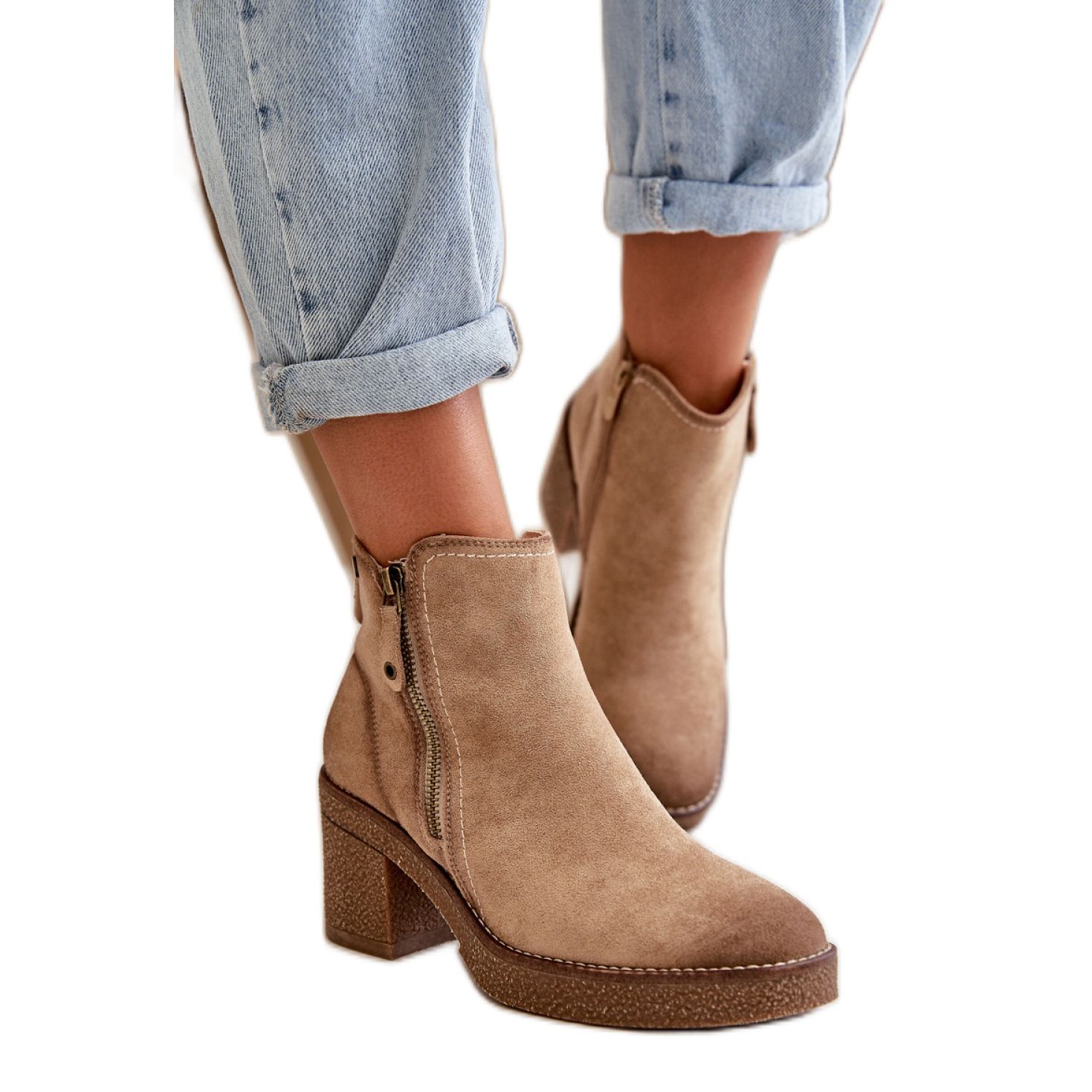 Izolované ženské boty na béžovém příspěvku jsou nutností v každém šatníku pro chladné dny. Tyto boty jsou vyrobeny z vysoce kvalitního měkkého ekologického semiše, kombinují eleganci a pohodlí. Stabilní pata ve tvaru sloupu s výškou 8 cm poskytuje pohodlí při nošení a zaoblené nosy přidávají trochu lehkosti.