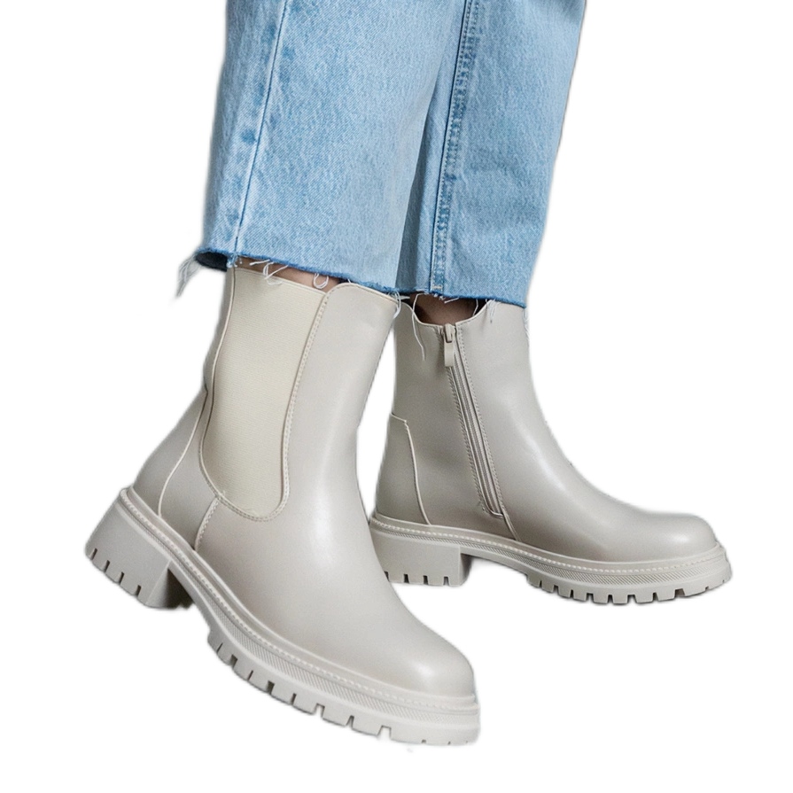 Inna marka Béžové zateplené kotníkové boty na zip, eko kůže béžový