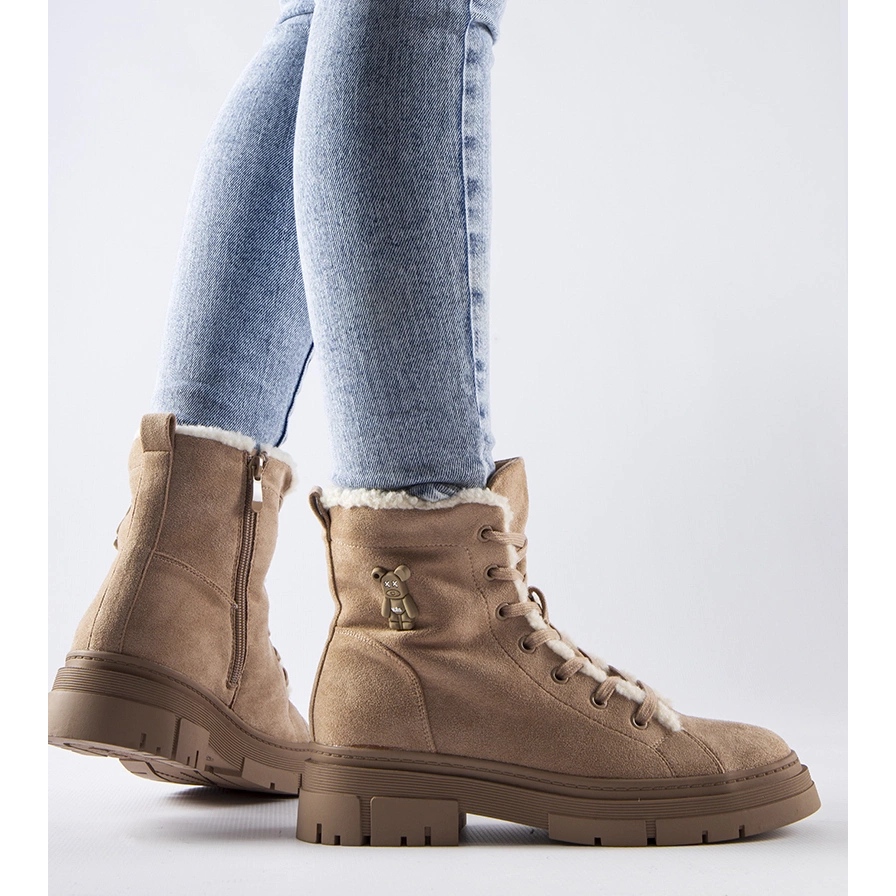 Inna marka Béžové zateplené kotníkové boty z eko semiše Pompei béžový