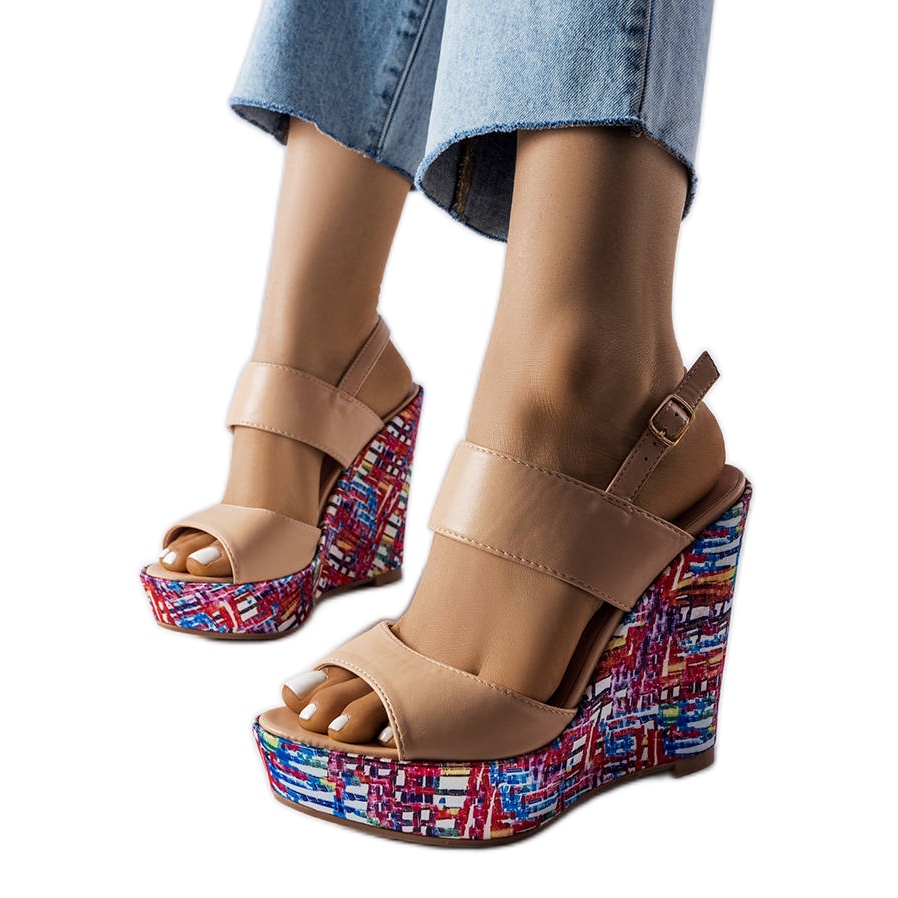 Inna marka Béžové zdobené sandály na klínku od Westtide béžový