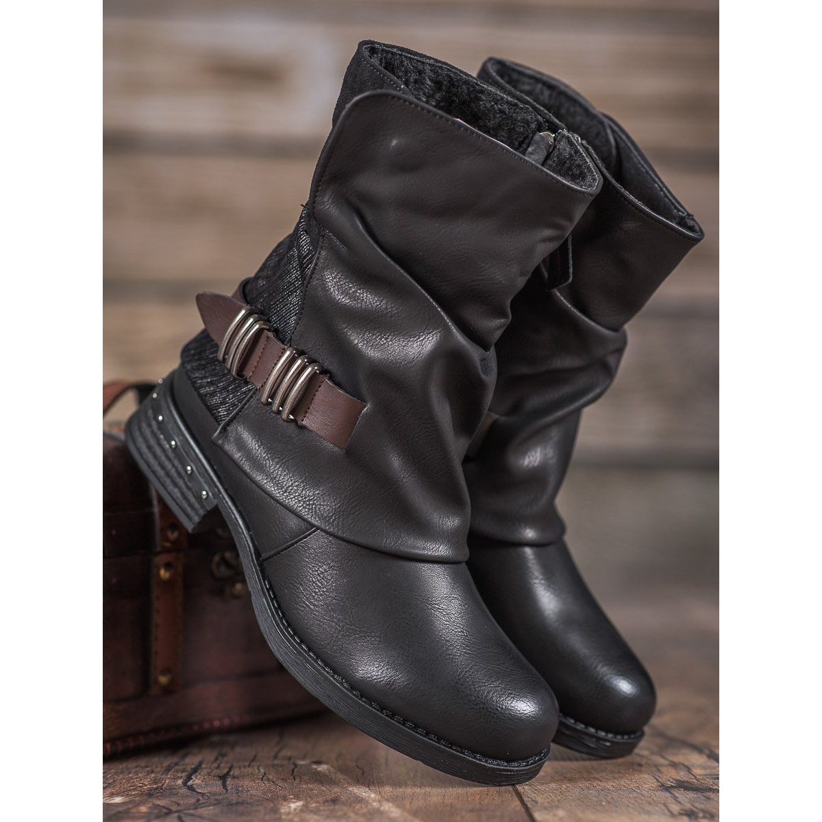 Design těchto bot je obohacen o malé, ale charakteristické kamínky, které dodávají motocyklový charakter a zdůrazňují divoký image. Díky 19 cm vysokému svršku jsou boty pohodlné a skvěle padne na každou ženskou nohu.