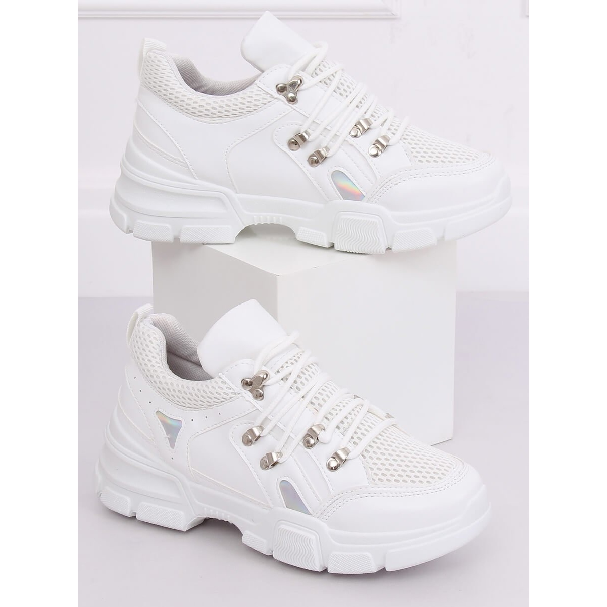 Objevte jedinečný styl a pohodlí v bílé sportovní obuvi CB19080 White! Tyto dámské tenisky jsou kombinací klasiky a moderny, která jistě zaujme. Jejich originální design zdobený síťovinou a holografickými vložkami z nich dělá perfektní střih pro aktuální módní trendy.