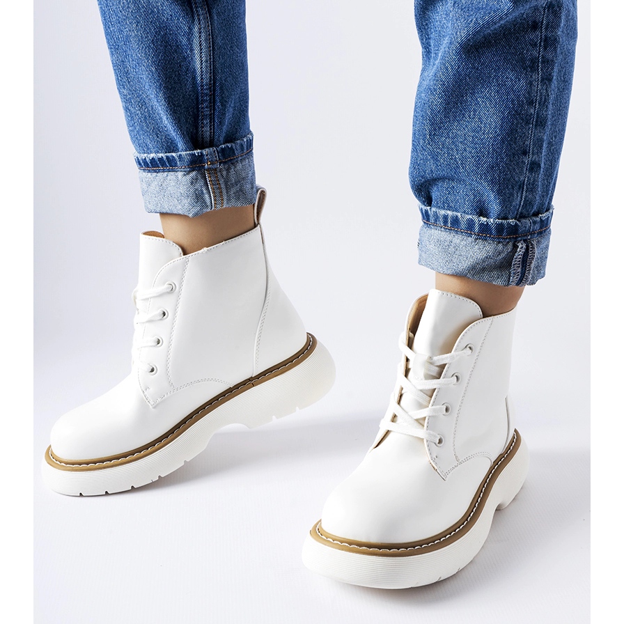 Inna marka Bílé dělnické boty na silné platformě Sacco bílý