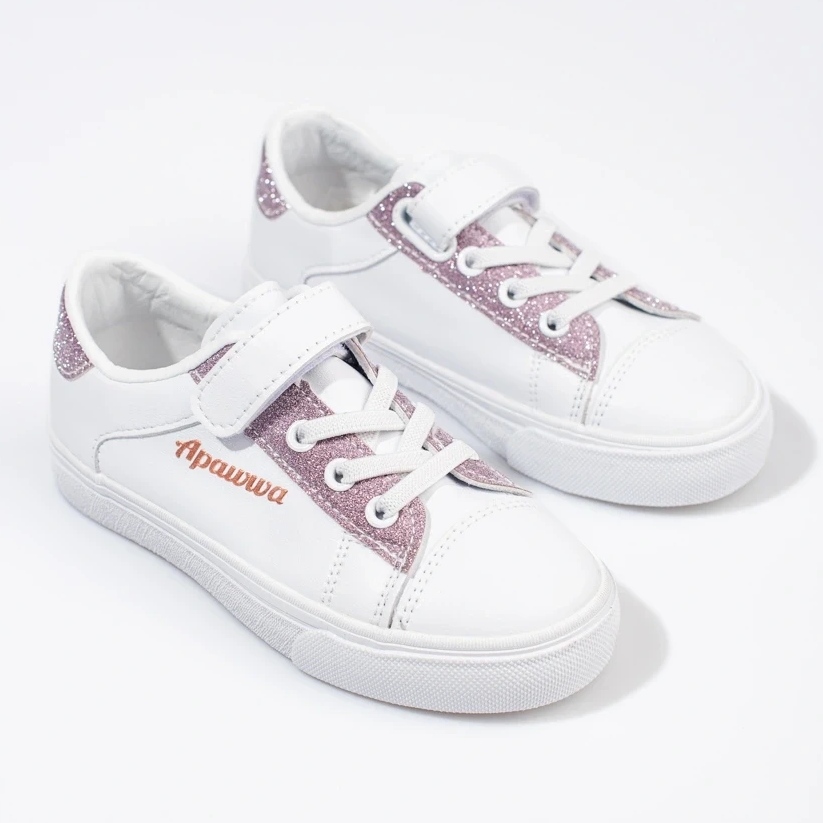 Okouzlující a praktické tenisky pro dívky, kombinující sportovní styl s dívčím přízvukem ve formě růžového třpytku. Ideální pro denní bázi - pro zábavu, mateřskou školu a procházky.