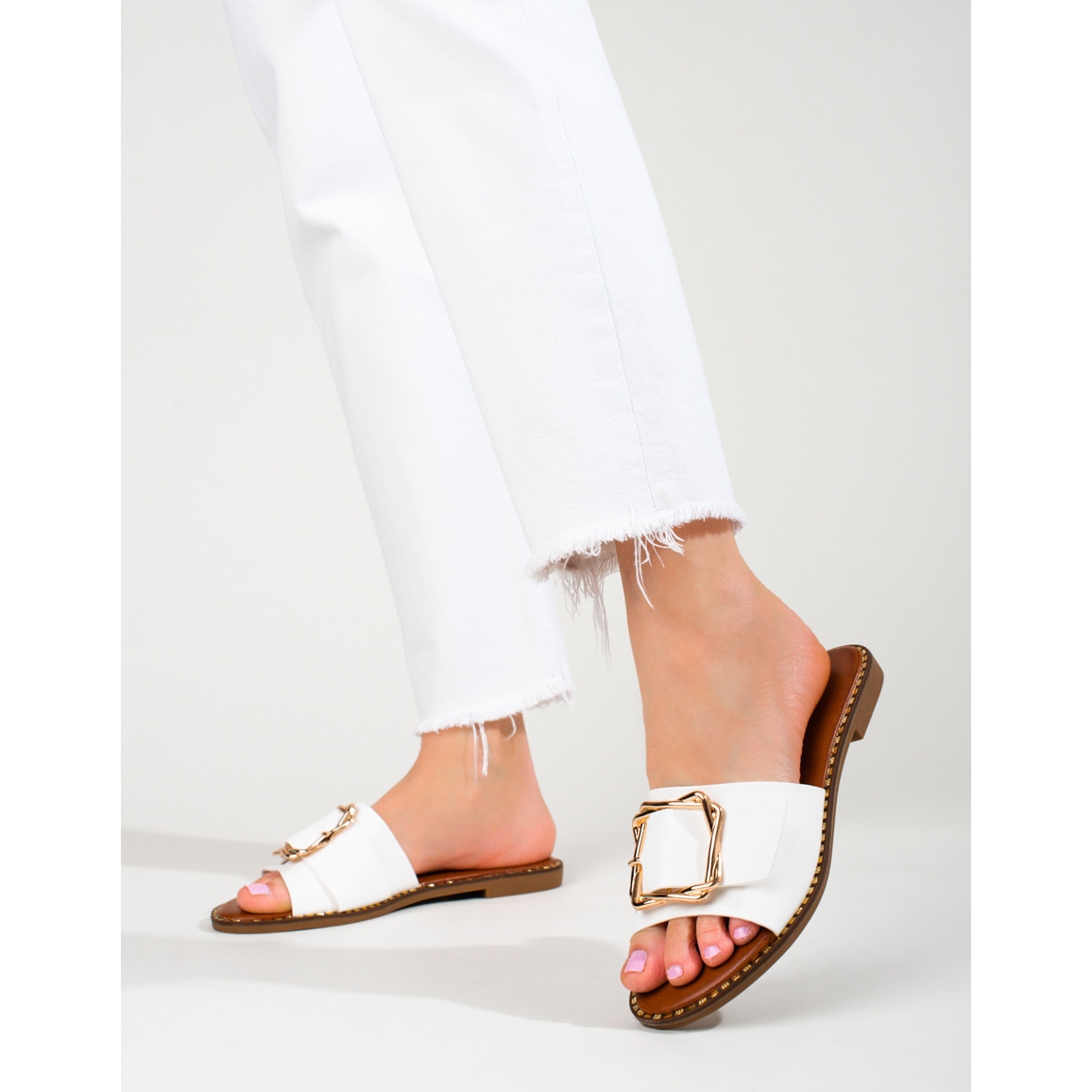 SHELOVET Bílé elegantní žabky s přezkou Shelovet bílý