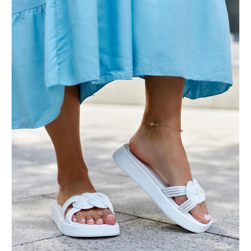 Model CM-49 se vyznačuje posuvnou sponou, což usnadňuje nasazení. Platforma s vysokou 3 cm zajišťuje pohodlí nošení po celý den a bílá barva podešví dokonale zapadá do nejnovějších módních trendů. Flip Flip Flops Ferrei jsou součástí letní sbírky a určitě se stanou oblíbeným prvkem skříně každé ženy.