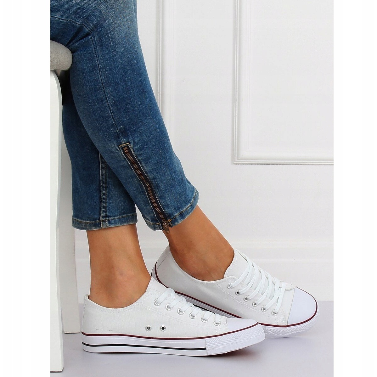 Inna marka Bílé klasické dámské tenisky JD05P BÍLÁ / ČERVENÁ bílý
